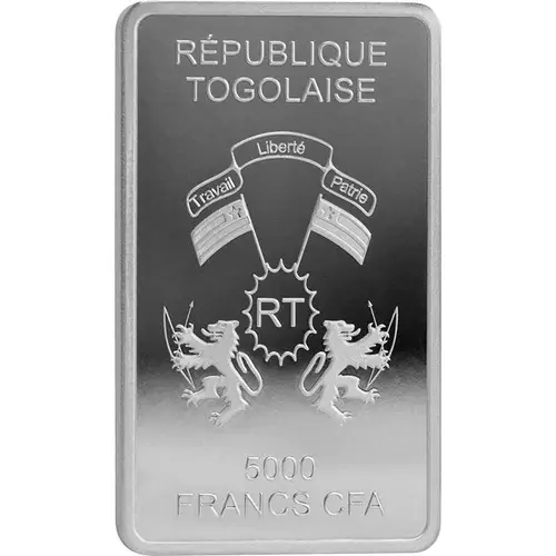 | Legenda del dritto | RÉPUBLIQUE TOGOLAISE Travail Liberté Patrie RT 5000 FRANCS CFA (Translation: Labour Freedom Homeland) |