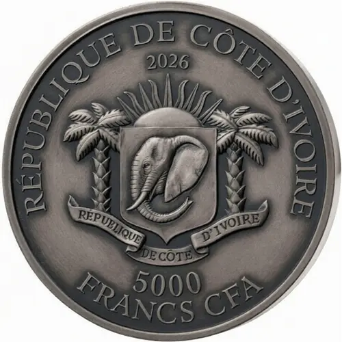 Historical Context: Issued by the Ivory Coast in 2026, this 5000 Francs CFA coin operates within the West African Economic and Monetary Union (WAEMU), overseen by the Central Bank of West African States (BCEAO). This modern commemorative piece, featuring the mythological Pegasus, signifies Ivory Coast’s engagement with global numismatic trends. Its release highlights a contemporary era where nations leverage universally recognized symbols to appeal to a broad international collecting audience, beyond traditional circulation.