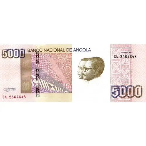| Opis líce | BANCO NACIONAL DE ANGOLA 5000 (Translation: National Bank of Angola) |