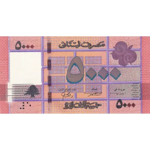 | Obverse lettering | مصرف لبنان ٥٠٠٠ خمسة الاف ليرة (Translation: Lebanon Bank 5000 Five thousand livres) |