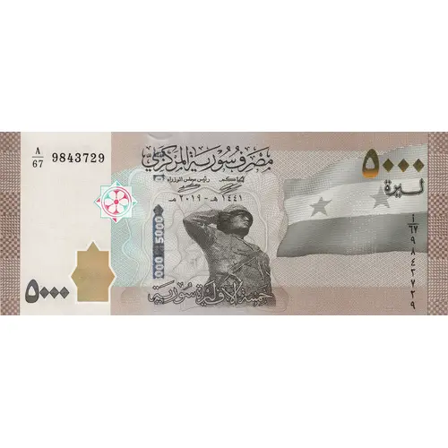 | Obverse lettering | ٥٠٠٠ (Translation: Central Bank of Syria Five Thousand Pounds.) |