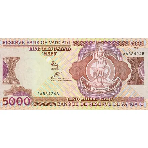 RESERVE BANK OF VANUATU FIVE THOUSAND VATU CINQ MILLE VATU BANQUE DE RESERVE DE VANUATU |