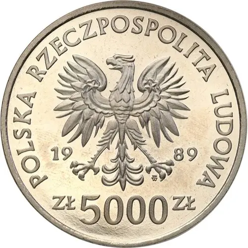 | Legenda del dritto | POLSKA RZECZPOSPOLITA LUDOWA 19 89 mw ZŁ 5000 ZŁ |