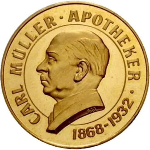 | Obverse lettering | CARL MÜLLER . APOTHEKER 1868-1932 · 900 |
