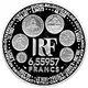 | Obverse description | In the center `RF` in large letters with `6.55957 francs`. The circumference indicates the different conversion rates of the countries participating in the Euro zone. Between these rates and the nominal value, in arc of circle a sample of French currencies (from the 1 ct to the 100 francs 1994). |