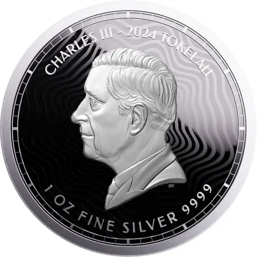 Obverse lettering CHARLES III - 2024 TOKELAU DT 1 OZ FINE SILVER 9999