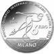 | Beschrijving keerzijde | In the centre, the official pictogram of the Olympic specialty of speed skating. Arch-shaped, the inscription “GIOCHI OLIMPICI INVERNALI DI MILANO CORTINA 2026”; at the bottom, “MILANO”, the city that will host the speed skating competitions. In the field on the left, “R”, identifying the Mint of Rome and “2025”, the year of the coin’s issue; on the right, “6 EURO”, the coin’s value and, at the bottom, the signature of the engraver “PETRASSI”. |