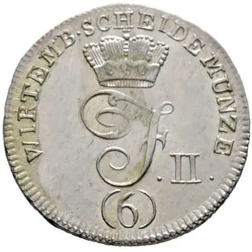 Artistry: The design of this 6 Kreuzers piece reflects common numismatic aesthetics of late 18th-century German states. While the specific engraver is typically unrecorded for such utilitarian denominations, the stylistic school leans towards a robust late Baroque tradition, incorporating nascent Neoclassicism. The obverse likely features the ducal monogram or cypher of Frederick II, often crowned. The reverse displays the denomination "6 KREUZER" and the date "1799," frequently enclosed within a simple wreath or cartouche, emphasizing clarity and functionality.