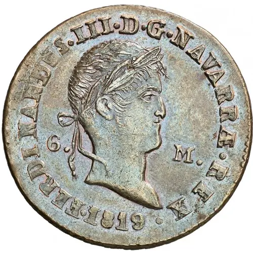 | Obverse lettering | FERDINANDUS III D G NAVARRAE REX 1819 6 M |