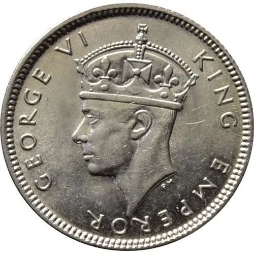 | Reverse description | Turtle surrounded by legend and date. Because of World War II, many of the mints of Europe could not produce and distribute coins for their distant colonies. This coin was struck at San Francisco instead of the British Royal Mint, so it bears the mint-mark `S` below the `year` in the date. |