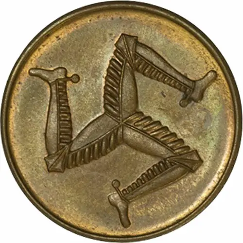 Obverse description Three legged Triskelion.