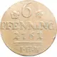 | Reverse lettering | 6 PFENNING 1761 ==== .I.H.B. |