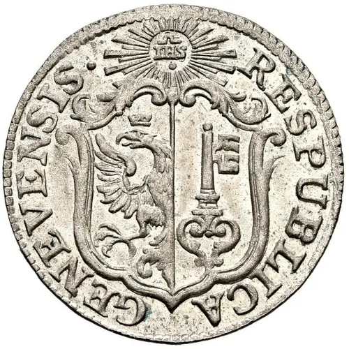 | Ön yüz açıklaması | Coat of arms of Geneva surrounded by the legend. Radiant sun above. |