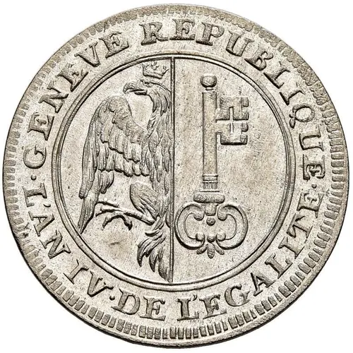 | Obverse lettering | GENEVE REPUBLIQUE L`AN IV · DE L`EGALITE |