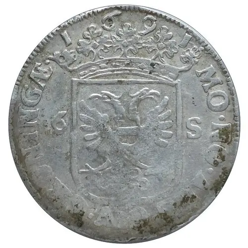 MO · NO · ARG · CIV · GRONINGAE 1691 (Translation: New silver coinage of the City of Groningen) |
