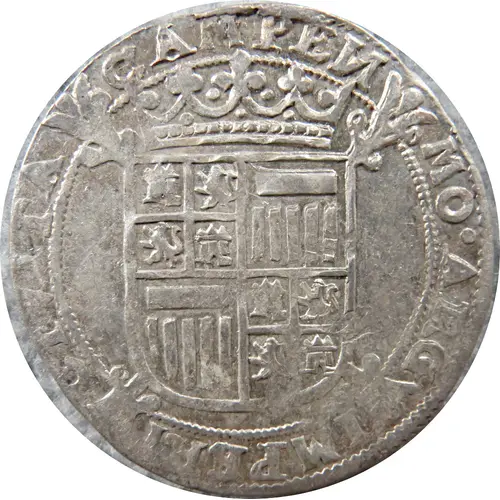 | Beschrijving voorzijde | Crowned Spanish arms on top of Burgundian cross |