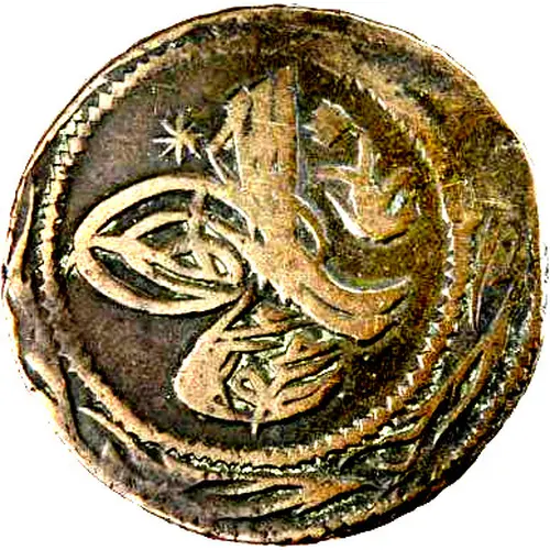 | Aversbeschreibung | Toughra of Mahmud II, flower at right and 8-pointed star on left, all within beaded circle, surrounded by florist ornament |