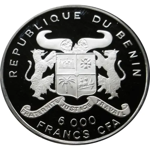 | Obverse lettering | REPUBLIQUE DU BENIN FRATERNITE JUSTICE TRAVAIL 6000 FRANCS CFA |
