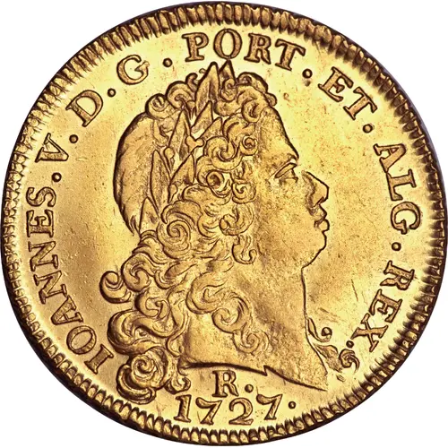 | Obverse lettering | IOANNES.V.D.G.PORT.ET.ALG.REX R 1727 (Translation: João V, by the Grace of God, King of Portugal and Algarves.) |