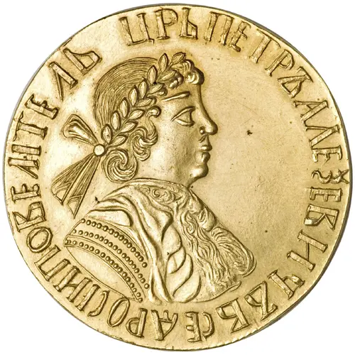 | Obverse description | Laureate and armored bust of Peter I right. |