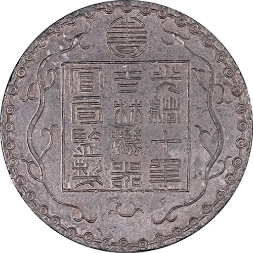 | Obverse lettering | 官吉光 局林緒 監機十 製器年 (Translation: Guangxu, 10th Year Kirin machinery Official production Mint) |