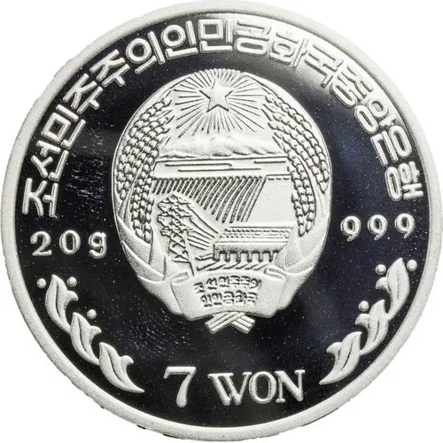| Obverse lettering | 조선민주주의인민공화국중앙은행 20g 999 7 WON (Translation: Central Bank of the Democratic People`s Republic of Korea) |