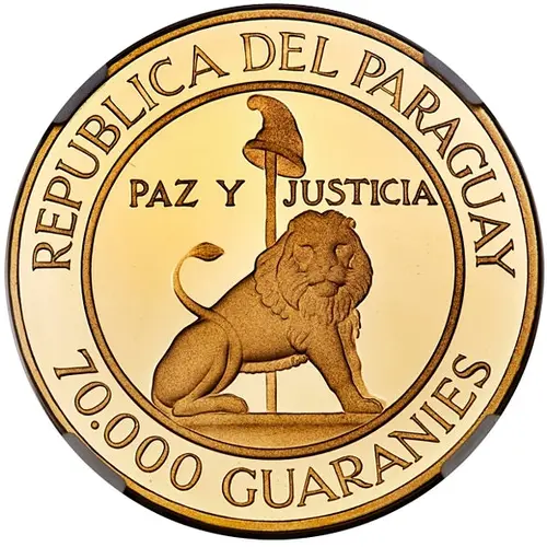 REPUBLICA DEL PARAGUAY PAZ Y JUSTICIA 70.000 GUARANIES (Translation: Republic of Paraguay Peace and Justice 70.000 Guaranies) |