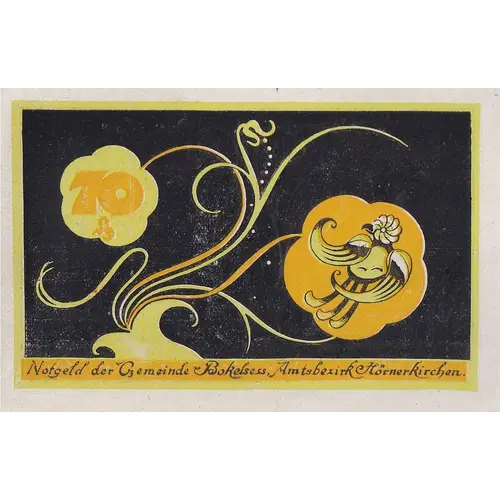 | Legenda awersu | 70 Pf. Notgeld der Gemeinde Bokelsess, Amtsbezirk Hörnerkirchen. |