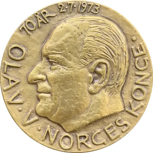 | Obverse lettering | OLAV . V . NORGES KONGE . 70 ÅR 2.7.1973 |