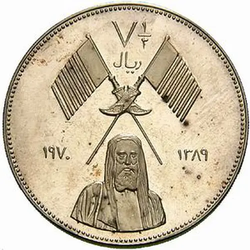 | Obverse lettering | ١/٢ ٧ ريال ١٣٨٩ ١٩٧٠ (Translation: 71/2 Riyals 1970 1389) |