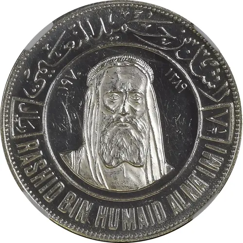 | Obverse lettering | راشد بن حُمَيد النّعَيمي ١٣٨٩ ١٩٧٠ ١/٢ ٧ ريَال RASHID BIN HUMAID AL NA`IMI (Translation: Rashid Bin Humaid Al Nuaimi 1970 1389 71/2 Riyals) |