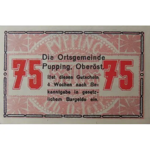 75 HELLER NOTGELD PYPPING 1920 (Translation: 75 HELLER NOTGELD PUPPING 1920) |