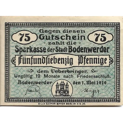 | Value | 75 Pfennigs (75 Pfennige) (0.75) |