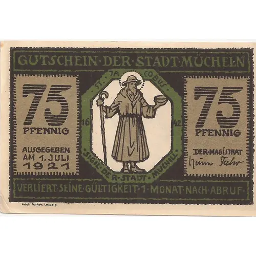 | Value | 75 Pfennigs (75 Pfennige) (0.75) |