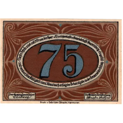 | Value | 75 Pfennigs (75 Pfennige) (0.75) |