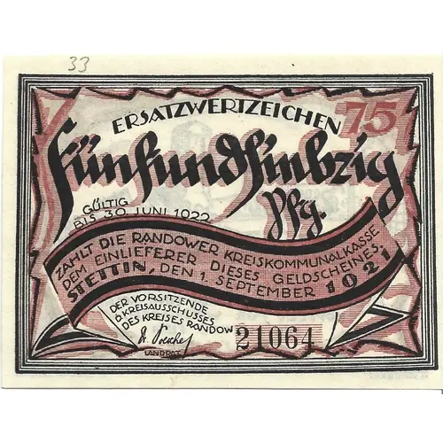 | Đơn vị phát hành | Randow, District of |