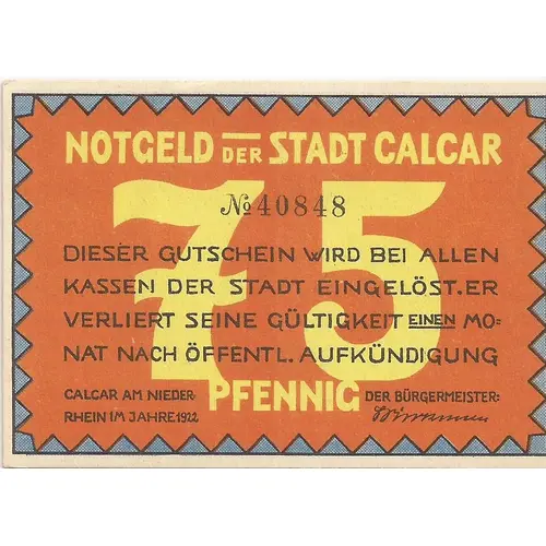 | Hodnota | 75 Pfennigs (75 Pfennige) (0.75) |