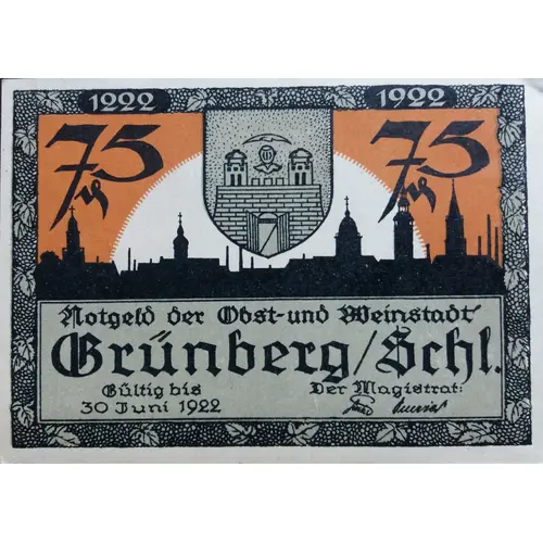 Obverse lettering Notgeld der Obst- und Weinstadt Grünberg/Schl. Gültig bis 30 Juni 1922 Der Magistrat