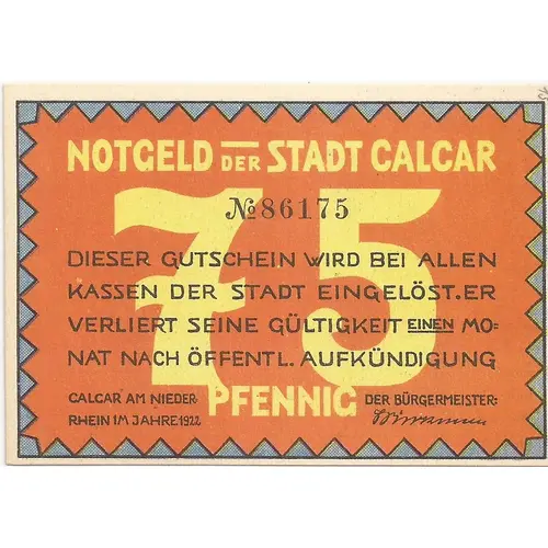 | Nominał | 75 Pfennigs (75 Pfennige) (0.75) |