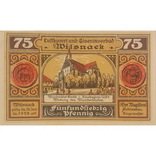 Légende de l’avers 75 Luftkurort und Eisenmoorbad 75 Wunderblut kirche Baubeginn 1384 Wirkung des Wunderblutes.