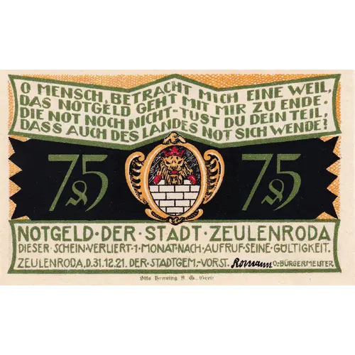 | Value | 75 Pfennigs (75 Pfennige) (0.75) |