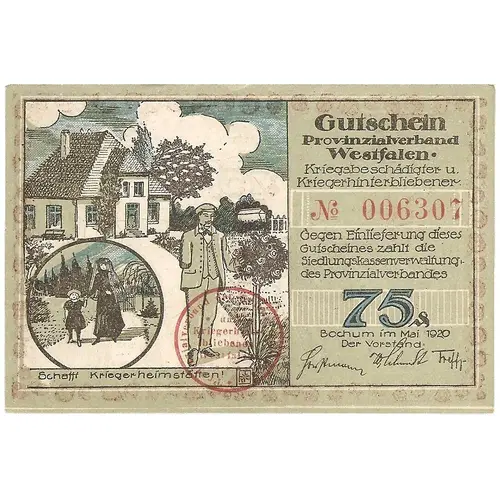 | Obverse lettering | Gutschein Provinzialverband Westfalen Bochum im mai 1920 |