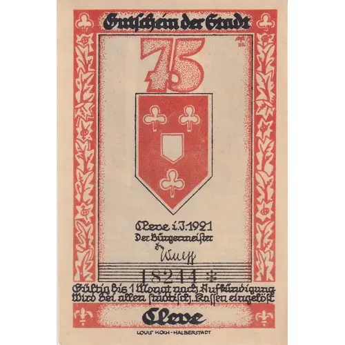 | Issuer | City of Kleve (Prussian province of Rhine) |