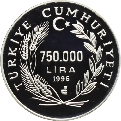 | Obverse lettering | TÜRKİYE CUMHURİYETİ 750.000 LİRA 1996 |
