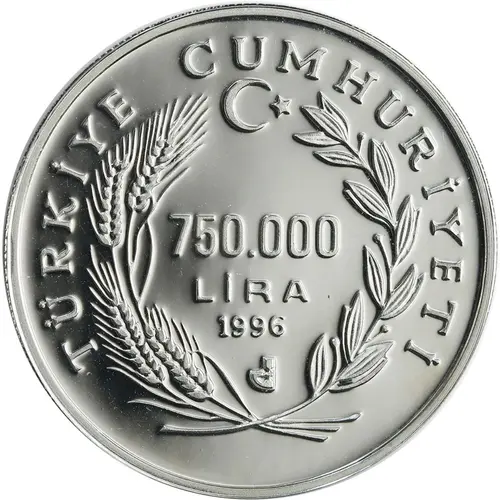 | Legenda awersu | TÜRKİYE CUMHURİYETİ 750.000 LİRA 1996 |