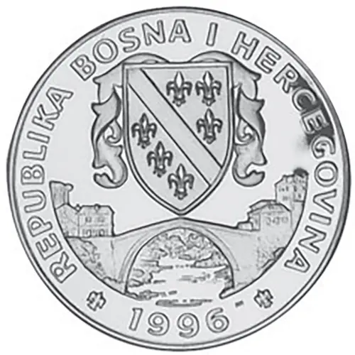 Historical Context: The 1996 750 Dinara Olympics - Sprinter coin from Bosnia and Herzegovina was issued during a pivotal post-Dayton Agreement era. As the nation recovered from war and solidified its new structures, this issue, preceding the Convertible Marka, held significant symbolic weight. Commemorating the Olympic Games, it underscored Bosnia and