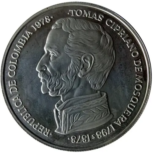 | Obverse lettering | REPÚBLICA DE COLOMBIA 1978 TOMAS CIPRIANO DE MOSQUERA 1798-1878 |