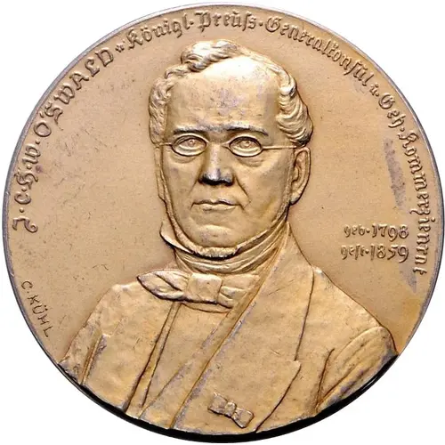| Obverse lettering | J.C.H.W. O`SWALD. Königl.Preuss.Generalkonsul.u.Geh.Kommerzienrat geb. 1798 gest. 1859 C.KÜHL |