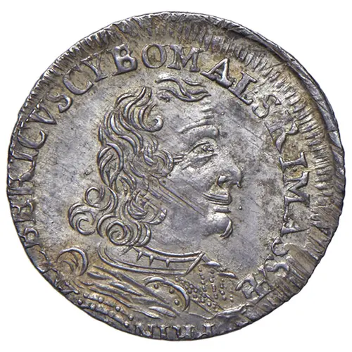 | Descrizione del dritto | Circular legend surrounded by beading, bust of Alberico II Cybo Malaspina to the right, draped and armored. |
