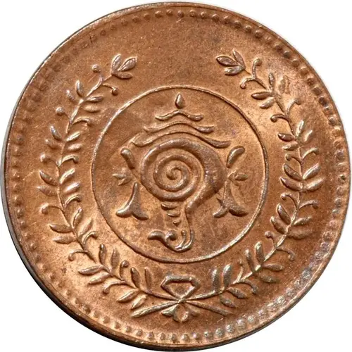 | Mô tả mặt trước | Conch shell (shanku) in circle, flanked by sprays, all within a circle of dots |